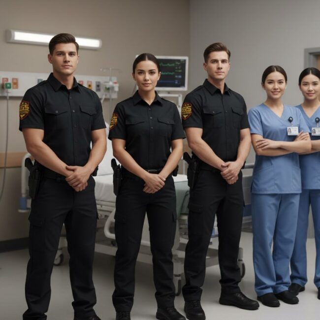 Healthcare settings require rapid intervention. Our officers respond to disturbances, behavioral incidents, and urgent security needs to restore order and assist medical personnel.